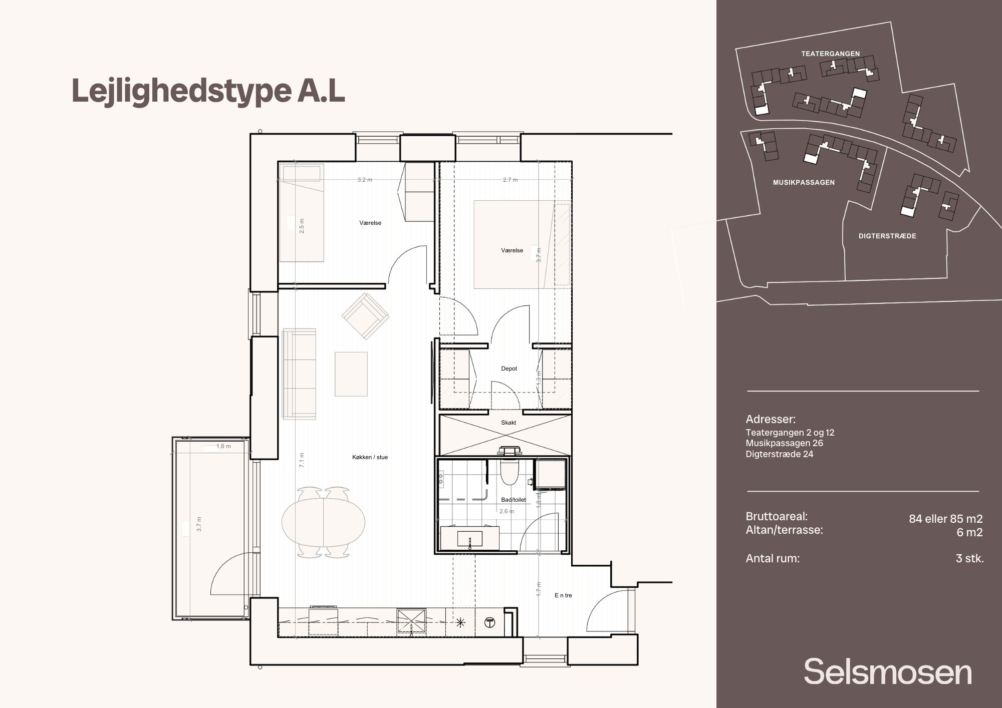 Bemærk at billederne kan være af en tilsvarende boligtype, hvorfor vi henviser til plantegningen og altid opfordrer til du oplever lejemålene ved selvsyn. Materialerne er dog de samme i alle enheder, med små variationer.