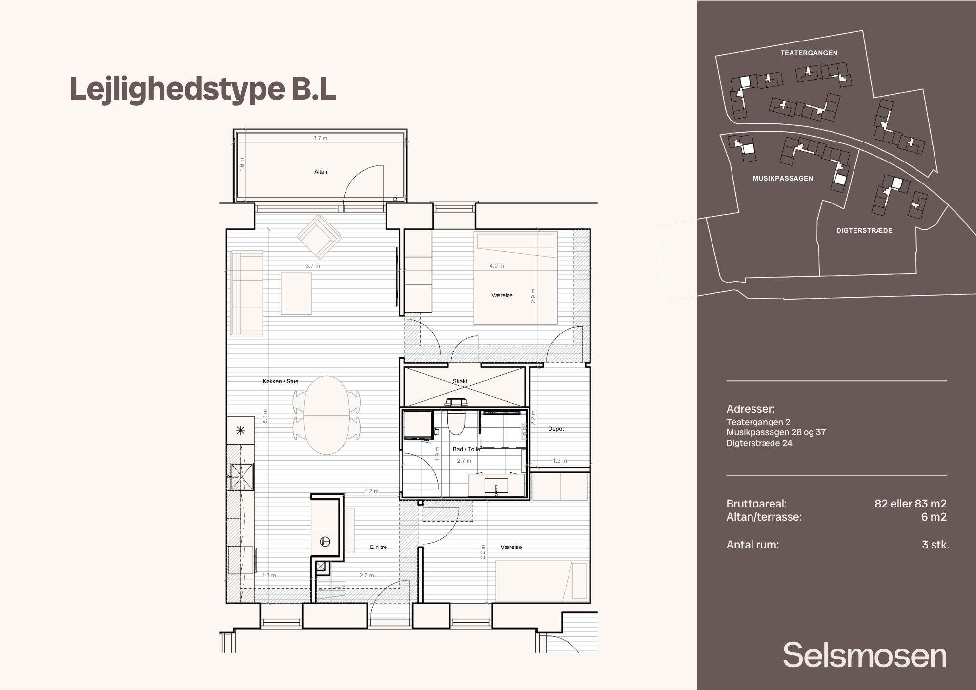 Bemærk at billederne kan være af en tilsvarende boligtype, hvorfor vi henviser til plantegningen og altid opfordrer til du oplever lejemålene ved selvsyn. Materialerne er dog de samme i alle enheder, med små variationer.